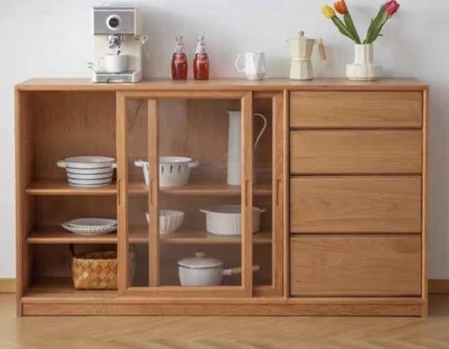 原木打造的收纳柜,纹理自然,质感舒适,摆放在空间内,既是家具,也是装饰品,搭配玻璃的柜门,精致又好看。